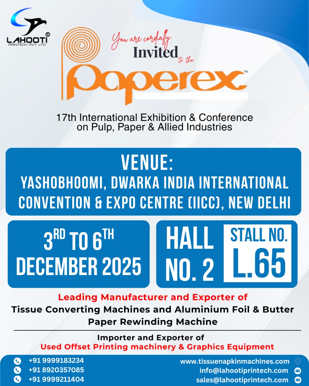 We "Lahooti Printech Pvt Ltd” have an experience and expertise in providing the best class quality product for making Paper Napkin Machine in India. It's not the years but the decades; we are working in this area of creating various machines like paper napkin, tissue converting, toilet roll, aluminium foil, paper core slicer & allied equipments. We are the 3rd generation in this industry followed by our respected grandfather and father and now to us.